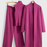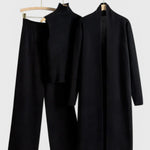 Donde la elegancia atemporal se encuentra con la comodidad diaria. El conjunto de 3 piezas Mahalia presenta un cárdigan largo, un cuello de tortuga sin mangas y pantalones de pierna ancha, todos elaborados con un tejido de punto ultra suave y transpirable. Ya sea que estés relajándote en casa, yendo a un brunch o saliendo por la noche, este conjunto ofrece una sofisticación sin esfuerzo con la comodidad que te encantará.