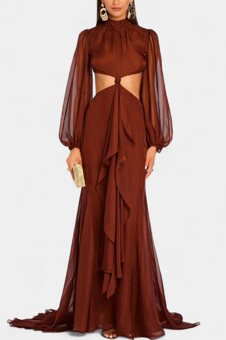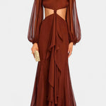 DELANIE VESTIDO MAXI CON CUTOUT Y VOLANTES DRAMÁTICOS
