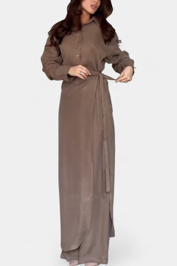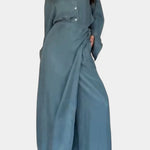 Fresco, ligero y versátil, el conjunto Marisol es la opción perfecta para un estilo relajado con un toque moderno. La camisa de corte suelto aporta comodidad sin esfuerzo, mientras que el pantalón tipo falda fluye con naturalidad para un look desenfadado pero refinado. Ideal para días de primavera, verano u otoño donde la sencillez se viste de elegancia casual.