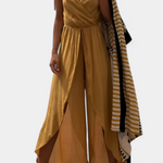 Comodidad relajada con un giro moderno y femenino. El mono Donatila combina un escote cruzado favorecedor con aberturas laterales en las piernas y tirantes ajustables, logrando una silueta desenfadada que se mueve con estilo. Ideal para días cálidos que fluyen entre lo casual y lo chic.
