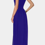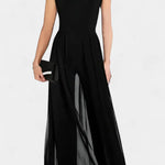Sofisticado y lleno de movimiento, el mono Nadia reinterpreta la elegancia clásica con una silueta moderna y ligera. Su diseño sin mangas y escote cerrado se equilibra con aberturas sutiles en los hombros y una capa de chiffon translúcido que fluye con cada paso, creando el efecto visual de un vestido largo.