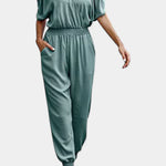 Relajado, favorecedor y con un toque coqueto, el mono Solene combina un escote en V cruzado con hombros descubiertos y lazos delicados para un look desenfadado pero cuidado. Su cintura elástica define la silueta con naturalidad, mientras que el bajo ajustado equilibra el volumen superior para una estética casual-chic perfecta para el día a día.