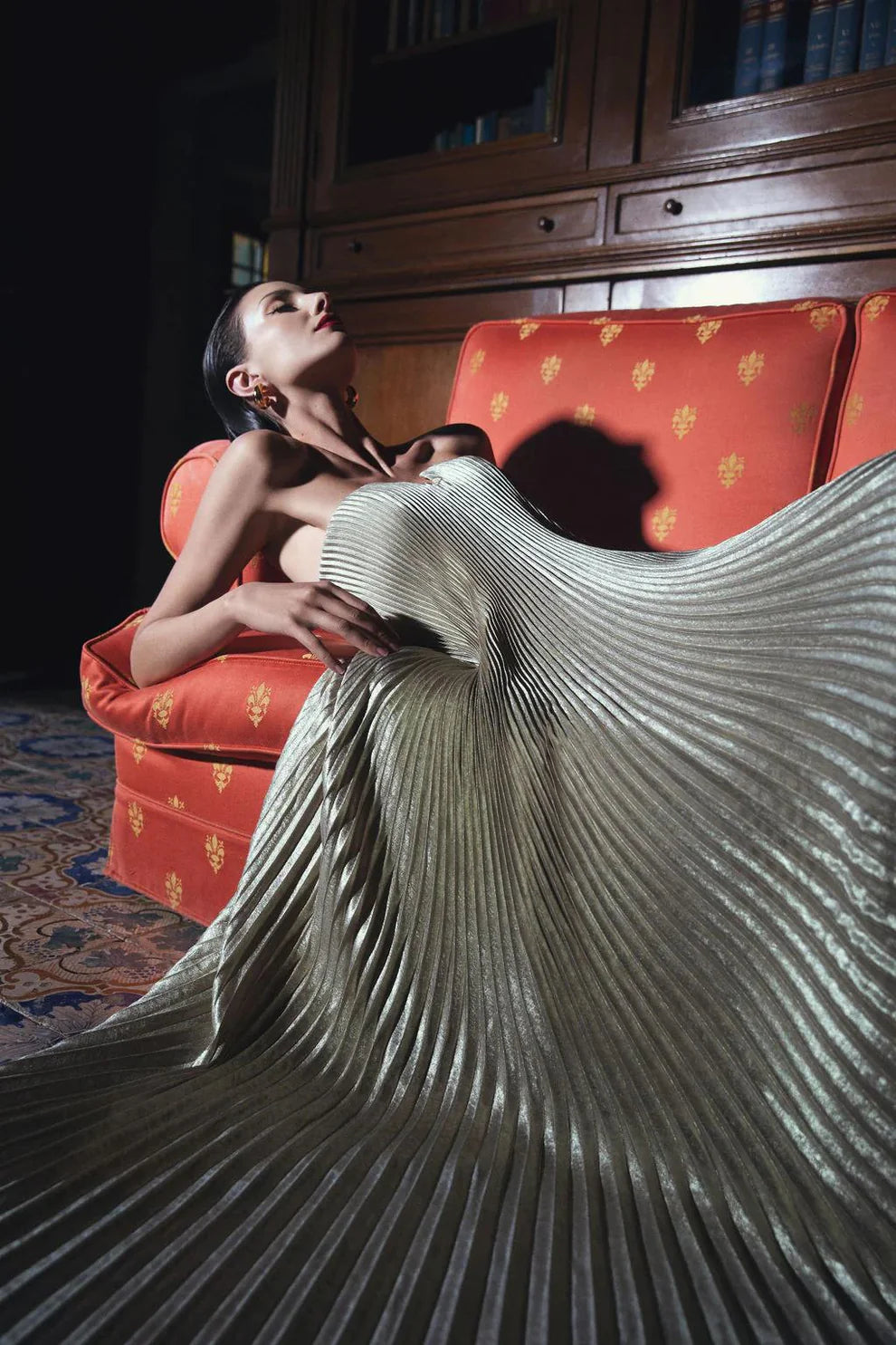 • Pliegues definidos que aportan volumen y fluidez sofisticada