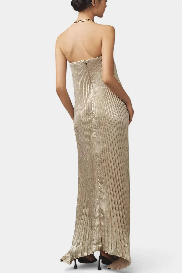 Diseñado para destacar con gracia y estructura. El vestido Andreia mezcla líneas definidas y movimiento fluido en una silueta A que favorece con naturalidad. El escote corazón con muescas añade un aire escultórico, mientras que los pliegues de cuchillo aportan dinamismo y elegancia en cada paso.