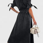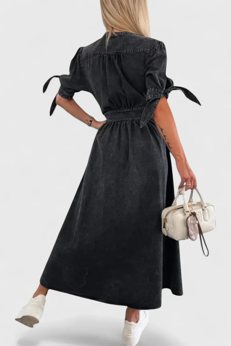 Adelina Vestido Midi de Denim con Botones y Escote en V – SOFIA BARCELONA