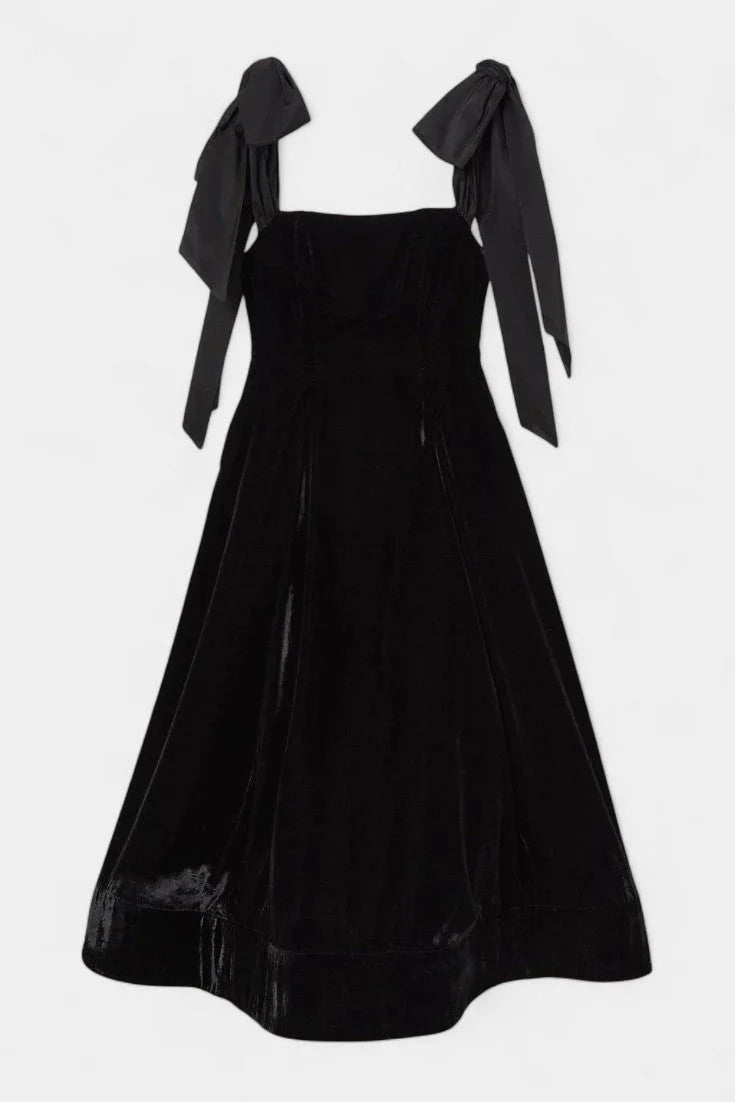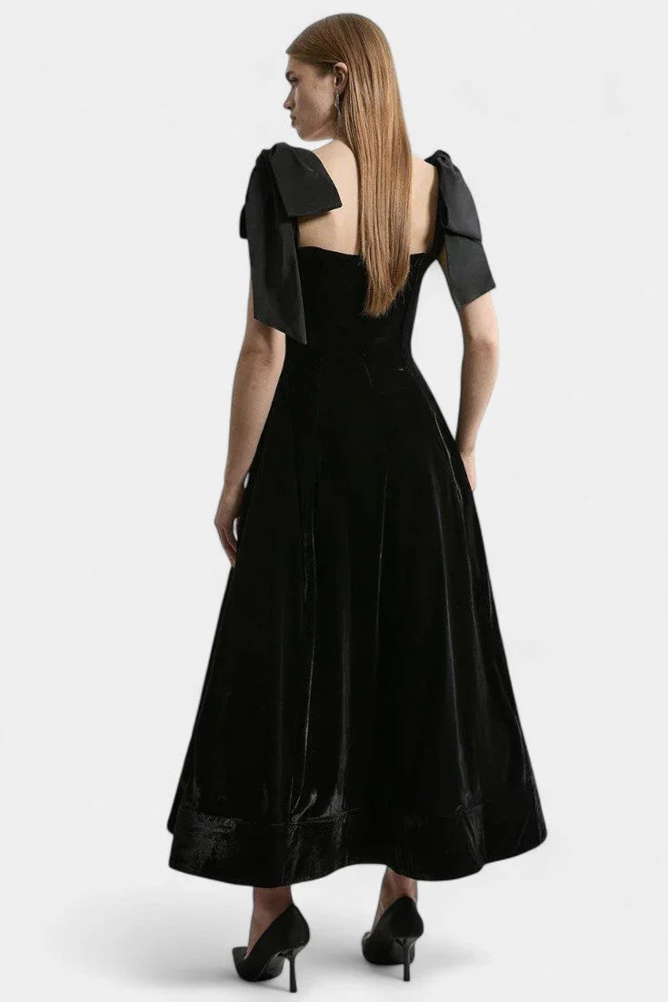 Ajla Vestido Midi de Terciopelo sin Tirantes con Lazo – SOFIA BARCELONA