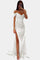 Entra en el centro de atención con Ariel—un vestido de sirena deslumbrante diseñado para brillar con elegancia y drama. Con su escote drapeado off-shoulder, fruncido esculpido y una abertura alta en el muslo, esta silueta de longitud completa está hecha para noches formales, galas y entradas inolvidables.
