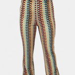 Audaz, cómodo y con mucho estilo. El pantalón Carlie destaca por su estampado ondulado multicolor y su tejido de spandex elástico que se adapta a tu figura con suavidad. Su corte acampanado y cintura alta alargan visualmente las piernas, creando un look moderno con guiños vintage. Ideal para elevar un outfit casual con personalidad.