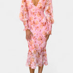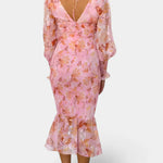 Romanticismo sutil con un aire fresco y femenino. El vestido Carly destaca por su cintura fruncida que define la silueta con suavidad, su escote en V favorecedor y sus mangas largas semitransparentes que aportan ligereza al conjunto. Una elección encantadora para quienes buscan elegancia relajada con un toque floral atemporal.
