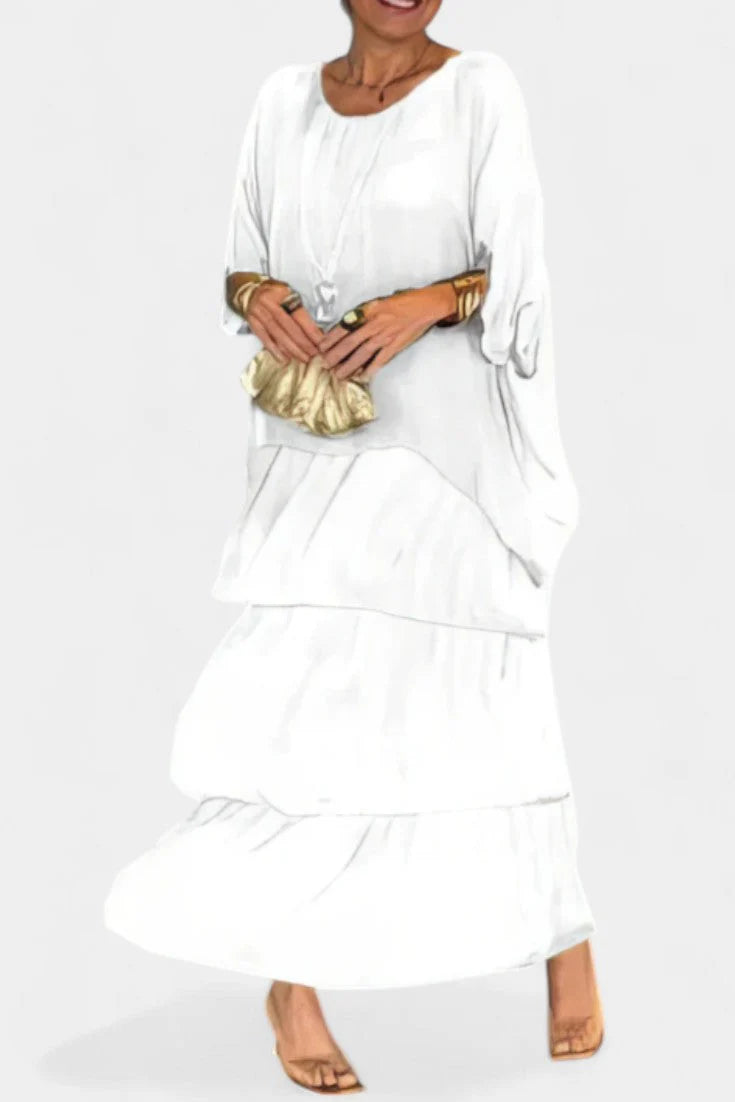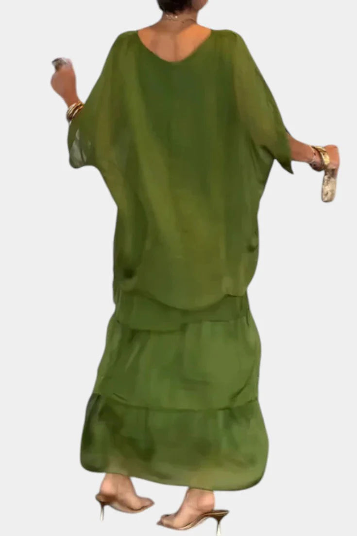 Caroline Vestido Maxi con Volantes y Mangas Murciélago – SOFIA BARCELONA