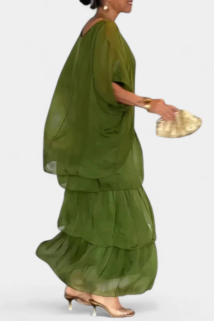 Caroline Vestido Maxi con Volantes y Mangas Murciélago