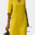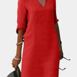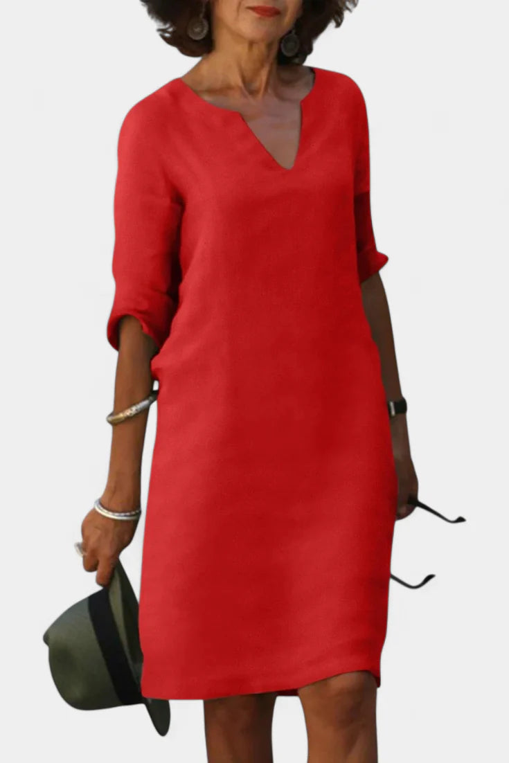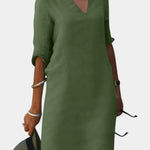 Elowen Vestido Escote en V con Manga Tres Cuartos