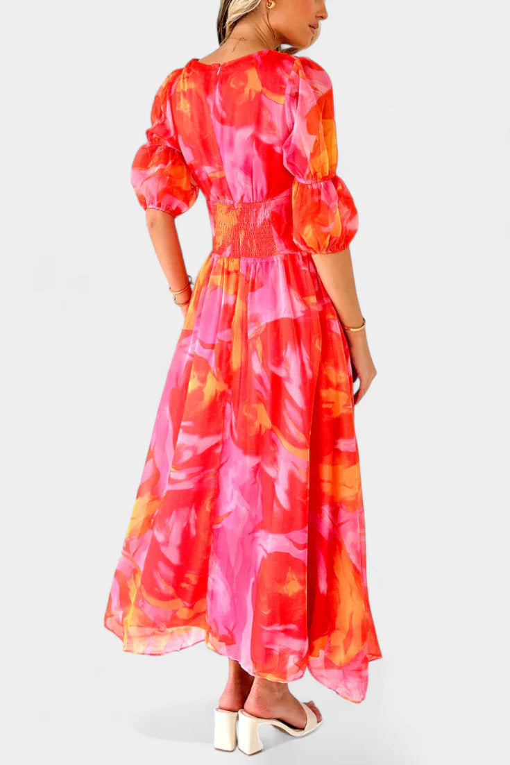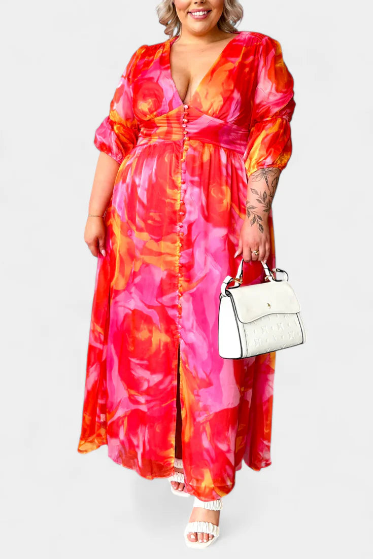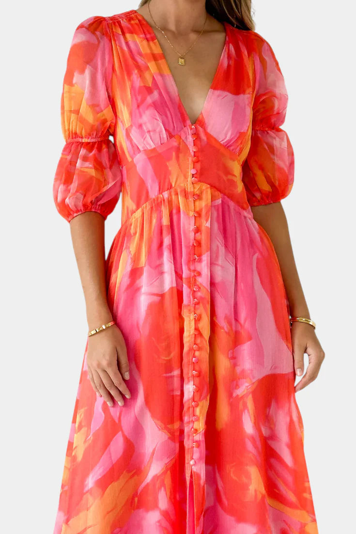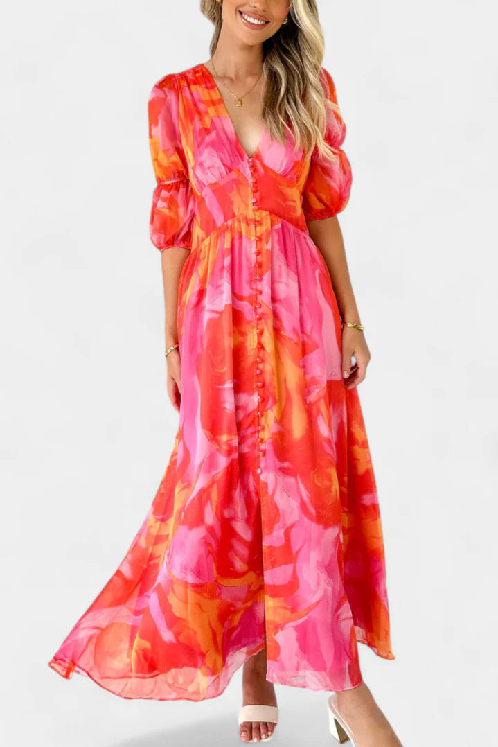 Essja Vestido Maxi de Manga Abullonada con Escote en V – SOFIA BARCELONA