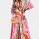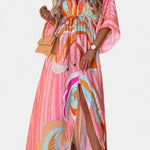 Joelle Vestido Maxi Arcoíris con Escote en V y Manga Murciélago