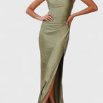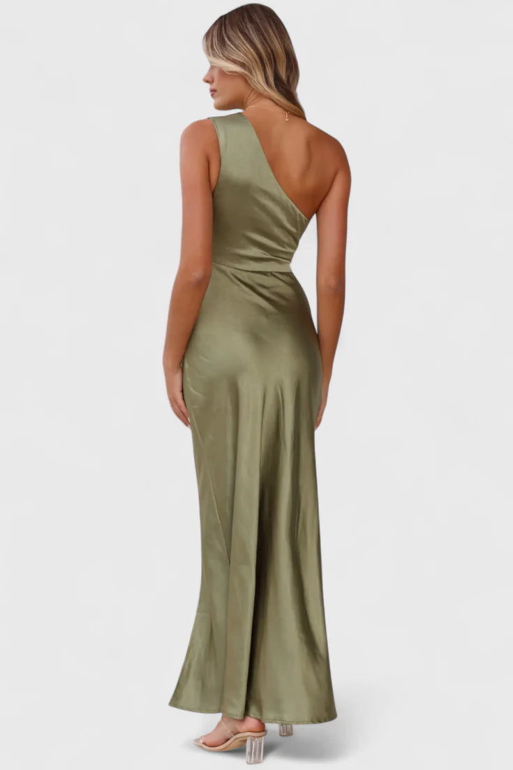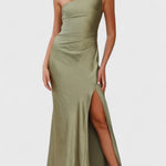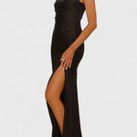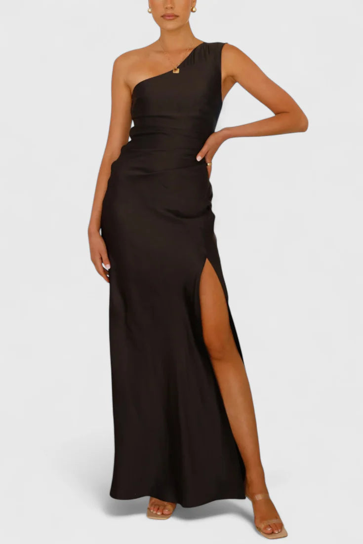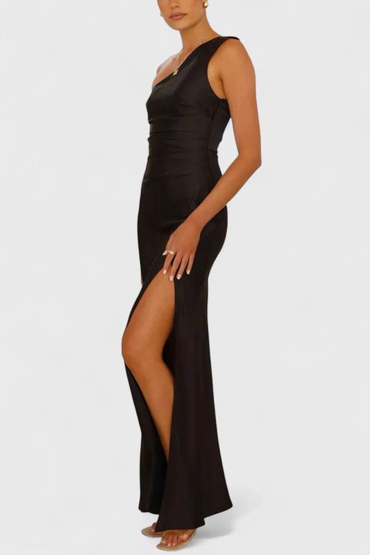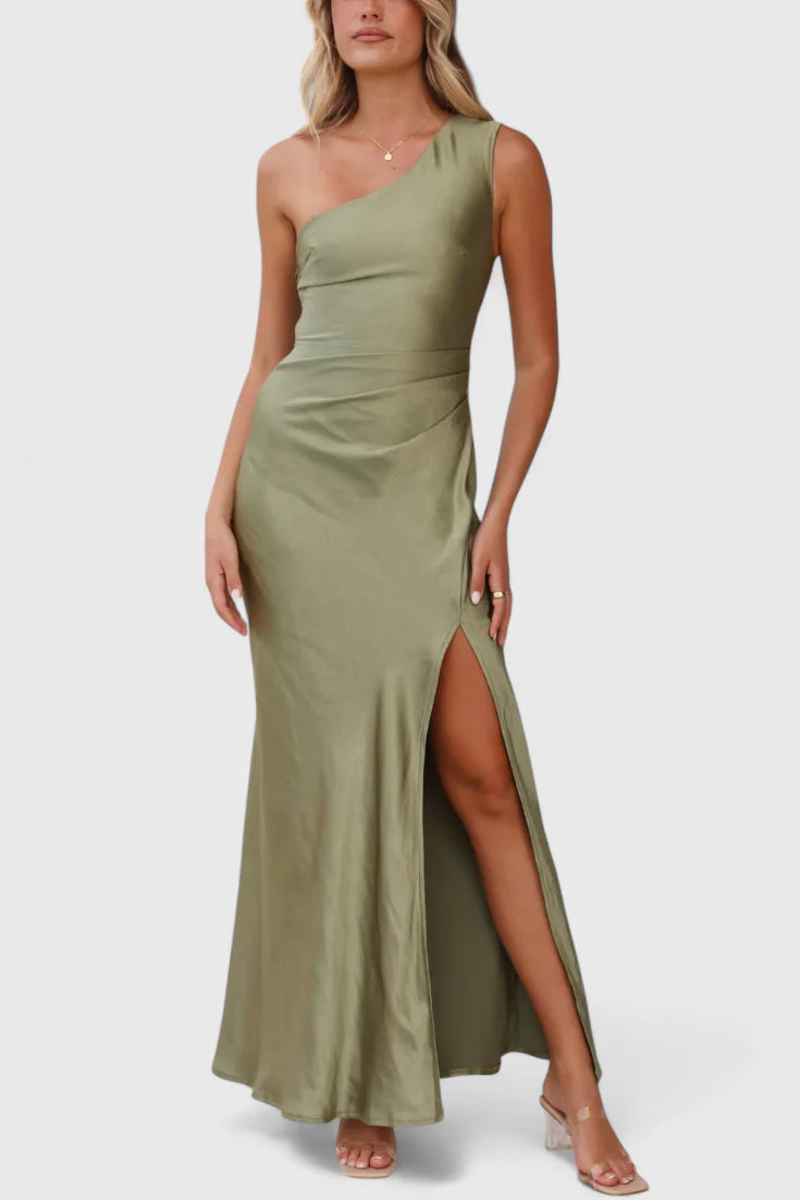 Josefa Vestido de Un Hombro con Pliegues y Alta Abertura – SOFIA BARCELONA