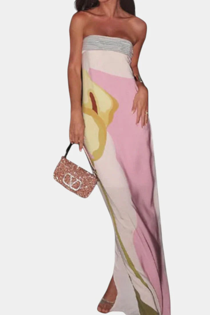 Laura Vestido Sin Tirantes con Estampado Floral – SOFIA BARCELONA