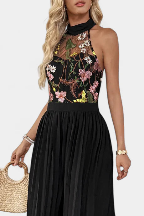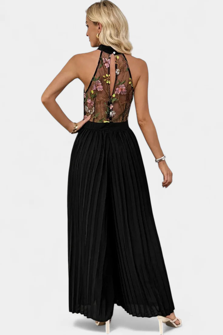 Maruja Mono Palazzo con Bordado Floral y Encaje Transparente