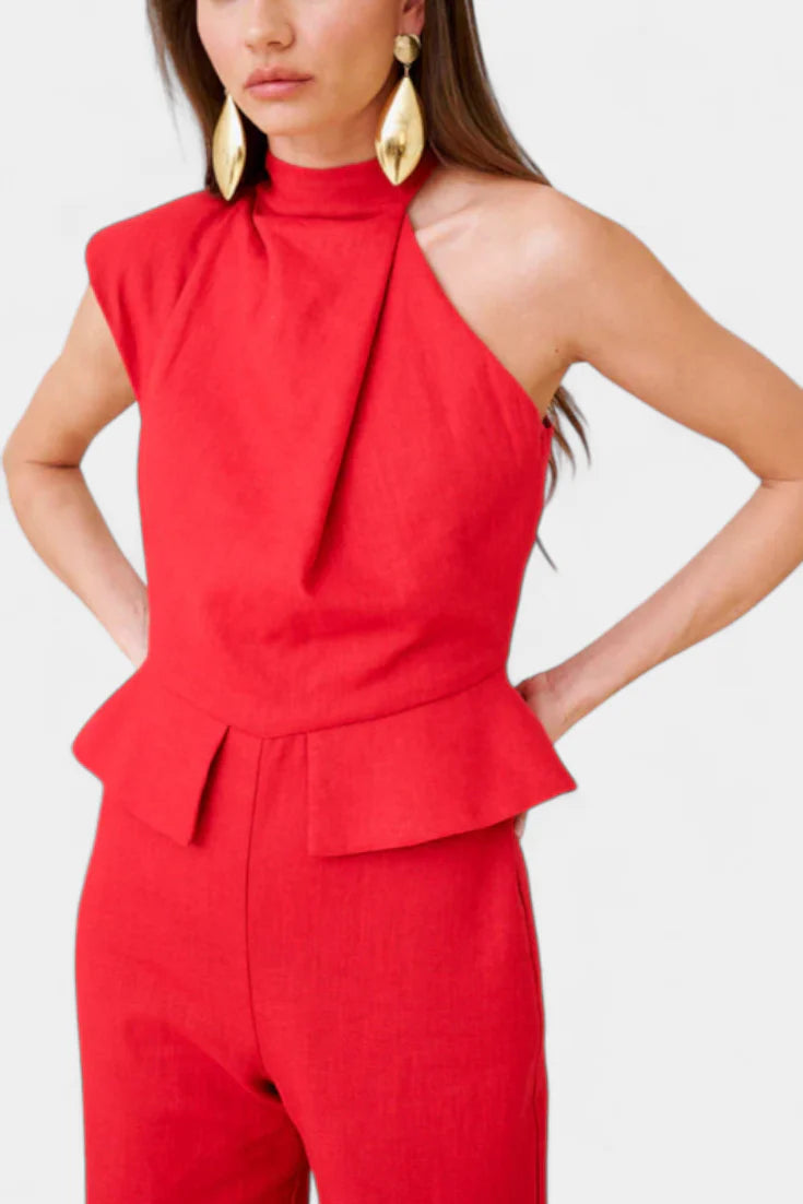 Elegante y fresco, el mono Nerida ofrece una fusión perfecta entre estilo refinado y comodidad veraniega. Su diseño asimétrico resalta el hombro con sofisticación, mientras que el tejido de lino y algodón mantiene una sensación ligera y transpirable incluso en los días más cálidos. Un corte recto y detalles cuidadosamente pensados lo convierten en una prenda ideal para destacar en eventos y celebraciones.